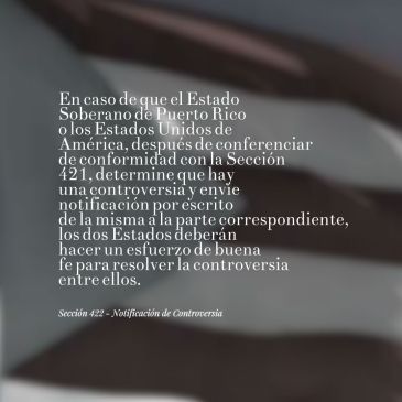 I. En caso de que el Estado Soberano de Puerto Rico o los Estados Unidos de América, después de conferenciar de conformidad con la Sección 421, determine que hay una controversia y envíe notificación por escrito de la misma a la parte correspondiente, los dos Estados deberán hacer un esfuerzo de buena fe para resolver la controversia entre ellos.
