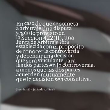 E. A falta de acuerdo sobre un presidente, la controversia no podrá ser resuelta por medio de la Junta de Arbitraje y aplicará la Sección 424 sobre la Corte Internacional de Justicia.