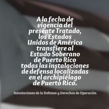A la fecha de vigencia del presente Tratado, los Estados Unidos de América transfiere al Estado Soberano de Puerto Rico todas las instalaciones de defensa localizadas en el archipiélago de Puerto Rico.