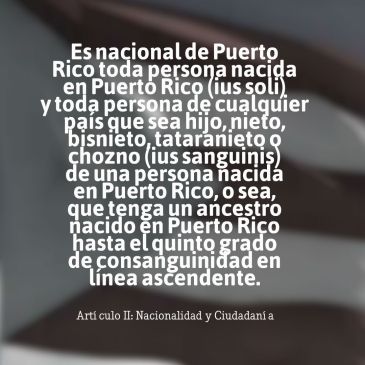Es nacional de Puerto Rico toda persona nacida en Puerto Rico (ius soli) y toda persona de cualquier país que sea hijo, nieto, bisnieto, tataranieto o chozno (ius sanguinis) de…(continuar leyendo)